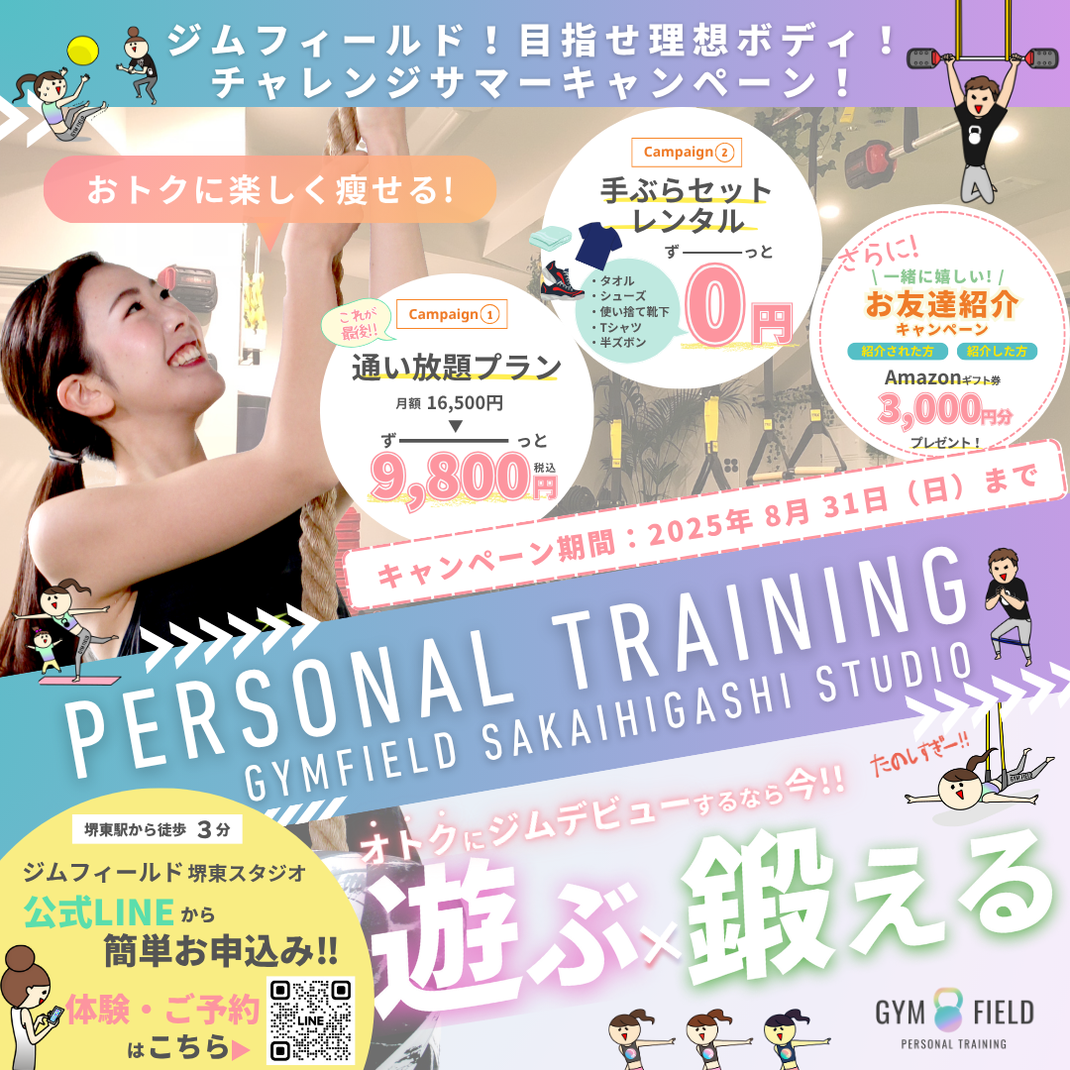 パーソナルトレーニングを東大阪で始めるなら、芝生の上で遊ぶように運動して、ボディメイクできる「ジムフィールド」にお任せ!