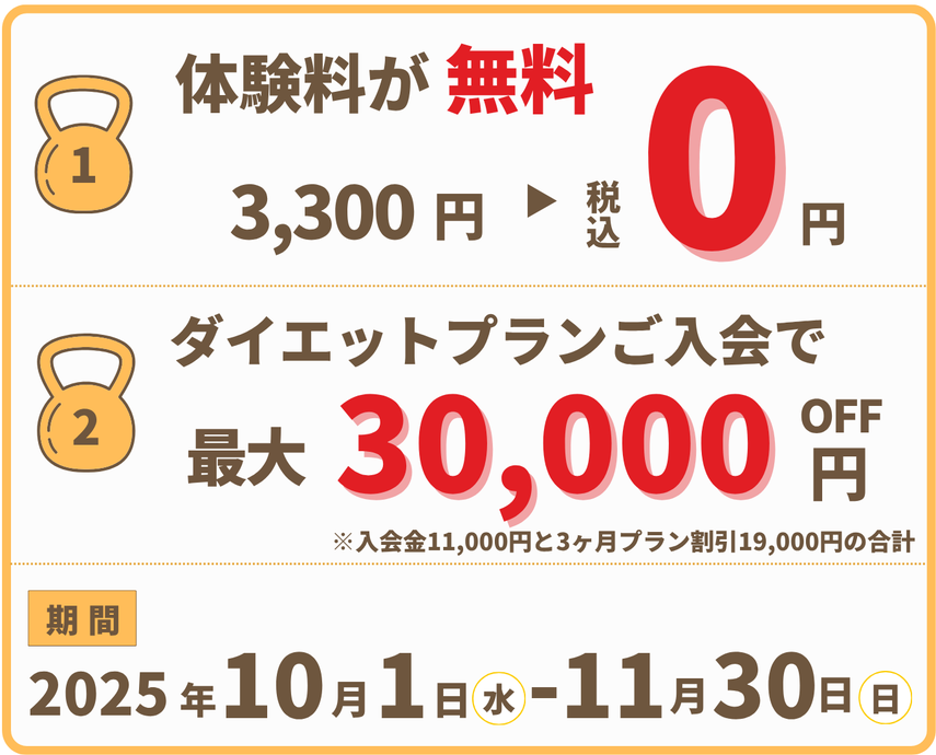 ※ 2ヶ月16回のパーソナルトレーニングが付いています