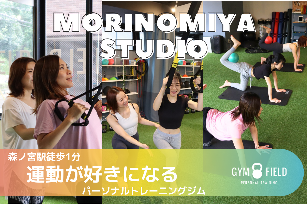 ジムフィールド森ノ宮スタジオは、JR環状線・中央線「森ノ宮駅」から徒歩1分の好立地にある、パーソナルトレーニング専門ジムです。